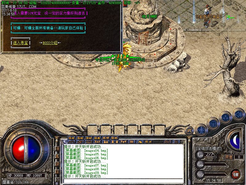【决战尸王】每20分钟刷新一次,可以爆出四级烈火,灵魂,四级盾,飓风,流星火雨..等等技能书!!