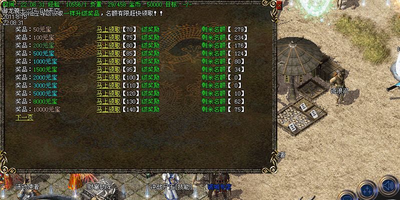 【攻沙奖励】:开区第3天攻沙,奖励元宝500万,老区300万,天天激情拿大奖