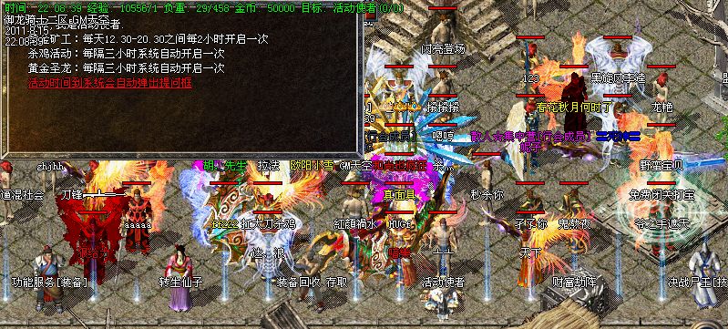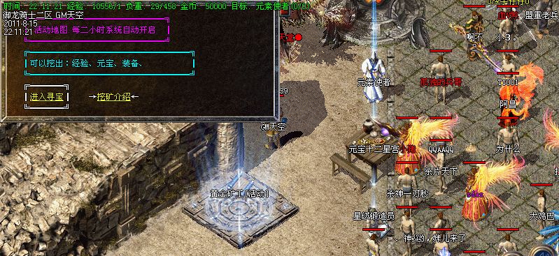 ①.【黄金矿工】:每天12.30-20.30之间每2小时开启一次,元宝经验装备,大放送
