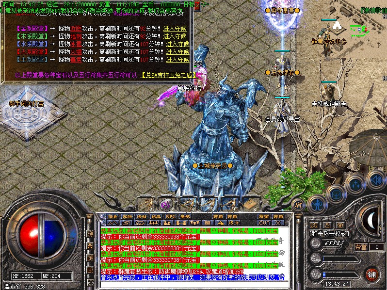6.人物上线就送聚灵珠,可以在你自己打怪的同时聚集经验.聚集的经验可以提出来交易或者自己用.具体使用规则请双击聚灵珠查看