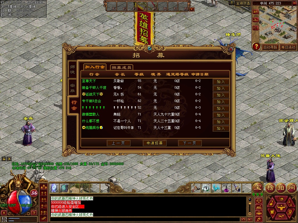 [提醒]行会老大输入 @行会收人 命令 可以打开关闭落霞旗帜收人功能