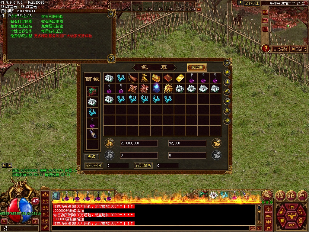 版本名称:361sf基地-2.0传世主宰秒升65535绝对牛逼超变版