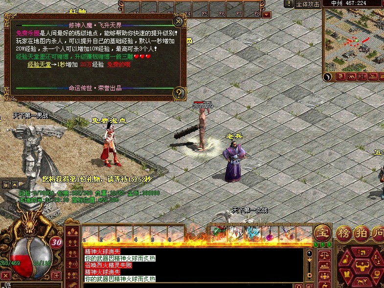 装备回收系统:可以在中州装备回收炉处回收装备成元宝、经验、极品修炼值。