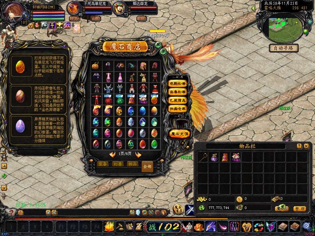 个性设置4:只有雷鸣大陆,树心城 戈壁 沼泽 海岛的怪物入包,VIP3为2点,VIP7为3点