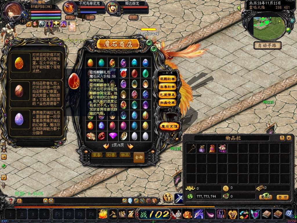 购买魔石请参照表格内充值方式自选购买。为确保公平一律谢绝还价!(注意:在整个充值过程中无需下线即可完成在线充值,充值成功后亦不需下线或重新登录,充值完成一分钟后在雷鸣大陆找充值NPC{天使.修}领取即可)需要银行汇款的请联系客服索取银行账号。