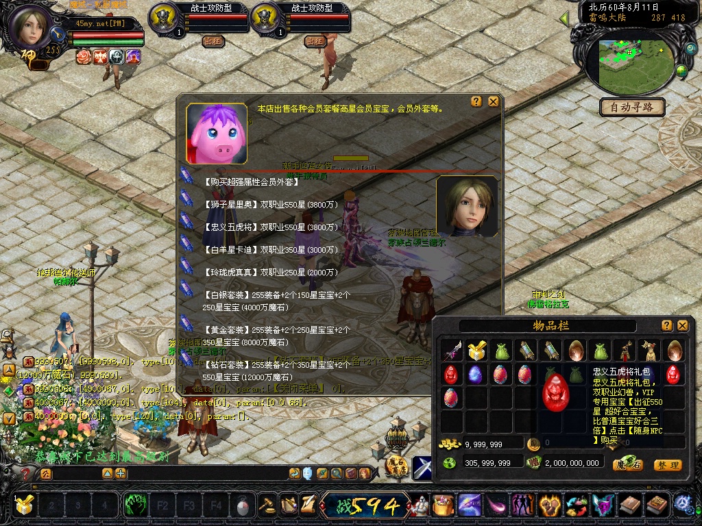 20元顶级钻石套装 战魂+9 魔魂+255超级装备一套+4宠+350*会员宝宝2个+550*会员宝宝2个+会员豪华礼服一件+VIP骑宠秒杀全场