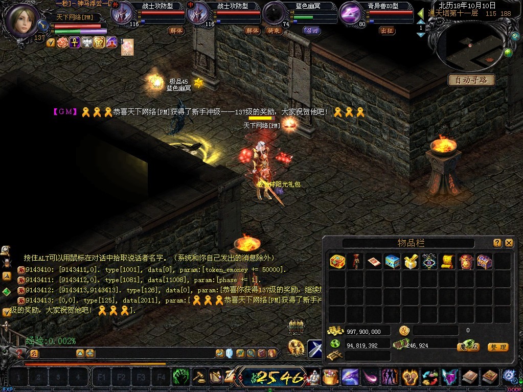 通天塔任务:爆所有高级星水、爆元素物品、爆高级宝石、爆出终极+255装备(非卖品人人可得)