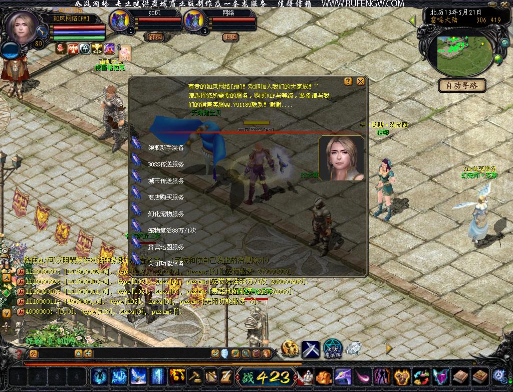 领工资,远程幻化宠物,BOSS传送,城市传送,洗去红名,出售最新7种加255神器等... ... 所有的功能分