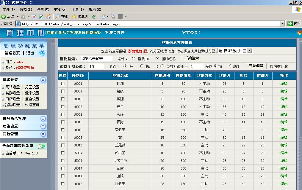 立即下载热血江湖ASP网站后台带GM管理工具系统