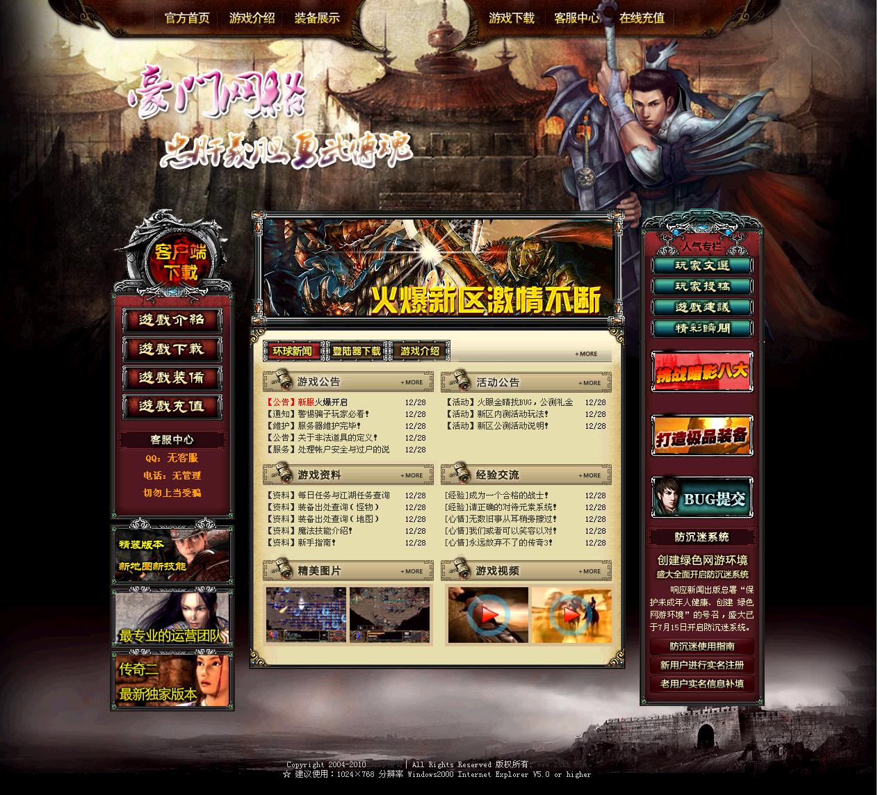 简介: 专业的美工,漂亮的格局, 游戏人物为背景,更突出游戏网站的魅力!