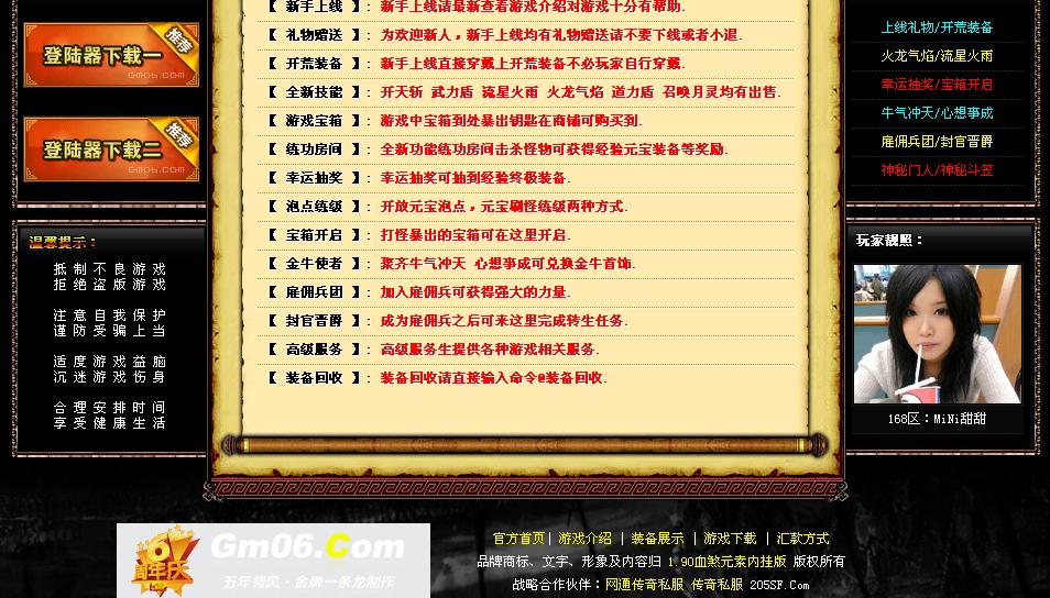 简介: 专业的美工,漂亮的格局, 游戏人物为背景,更突出游戏网站的魅力!