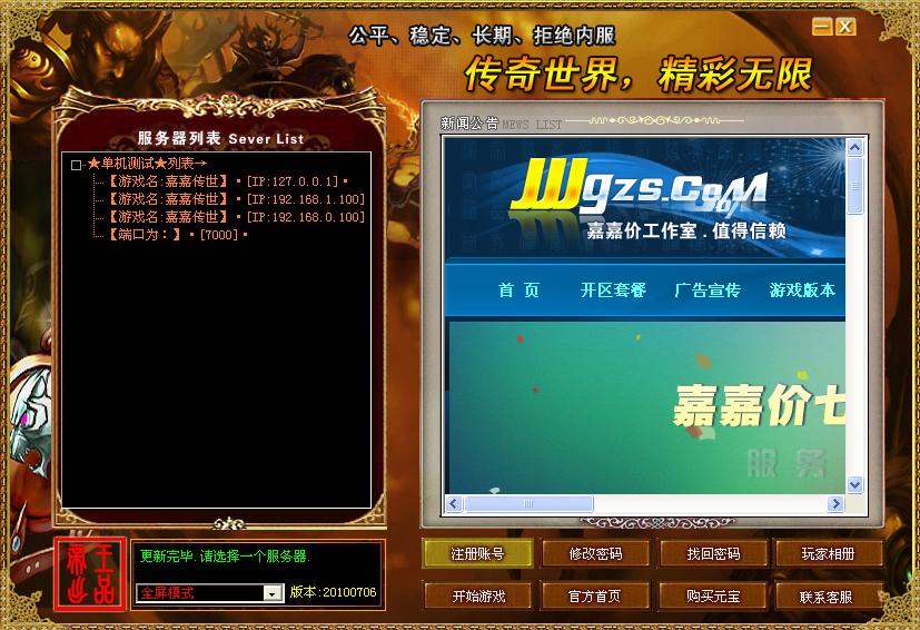 立即下载嘉嘉价仿帝王v100706版登入器配置器