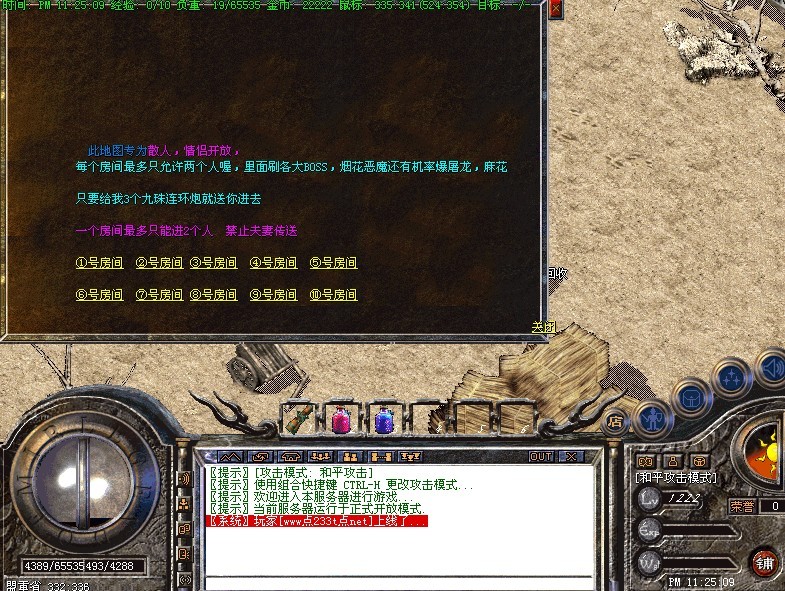 本服务器的烟花地图从土城安全区处烟花使者直接进入,烟花地图分为十个房间,每个房间最多