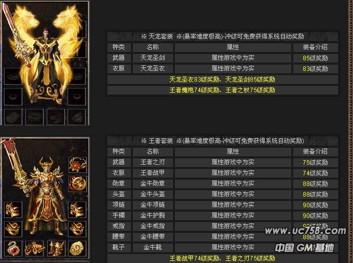 【奖励】升级奖励不断,只要你肯努力不花钱也可以获得终极!王者套装.天龙圣剑.天龙圣衣.系统自动送出,请注意包裹空间!