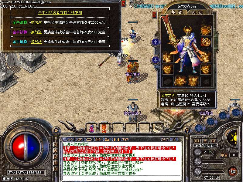 【元宝出处】为了让每个玩家都能打到元宝,新增了元宝之地地图,每次只有5分钟的时间,猪洞7层白猪也爆元宝 玩家还可以打战神/狂雷/王者装备在土城装备回收处换取元宝。