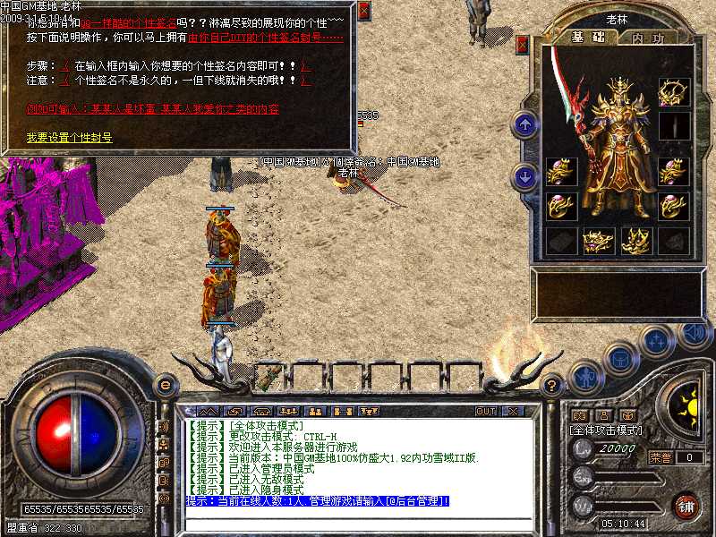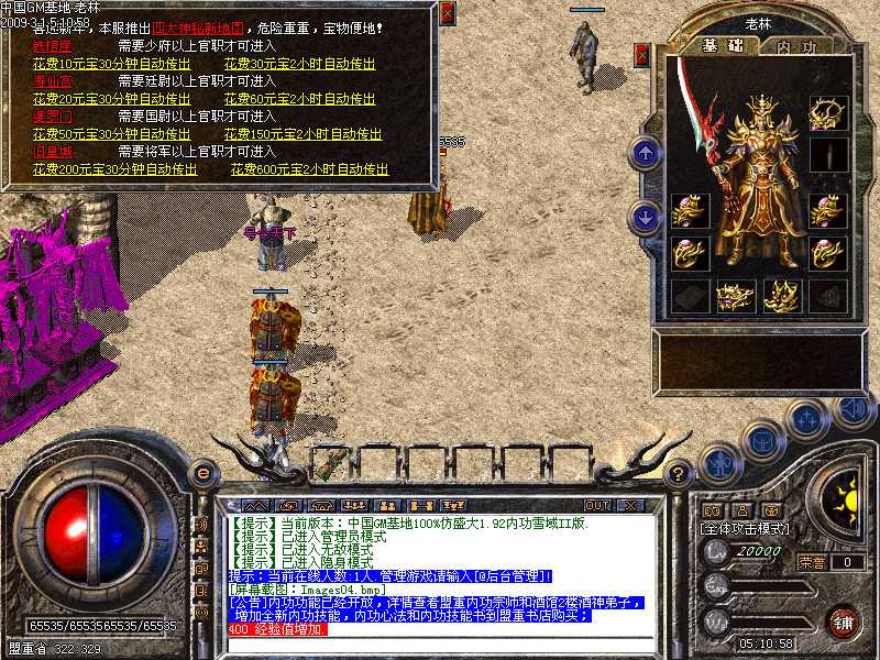版本号为:中国GM基地100%仿盛大1.92内功雪域II版