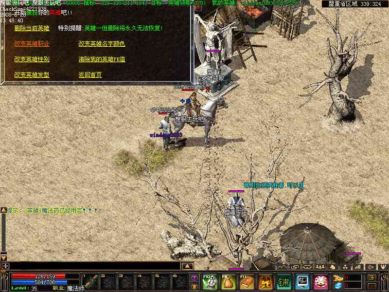 2008新英雄版增加功能:地图音乐(进入不同地图播发不同音乐玩游戏不再单调)通缉系统(可发布通缉令通缉你的对手).捉拿通缉犯会获得元宝奖励监狱系统(可将你讨厌的人关进监狱20分钟).追杀系统(可以将你直接传送到你敌人身边打个出奇不意)召唤系统:(可将你的朋友召唤到身边)城主可以召唤坐骑.并获得全服最高属性的城主专用武器.同时还可以召唤守将来保护自己.提高自身的权利与尊贵形象.掌门也可召唤坐骑但不同于城主的坐骑. 装备寄卖系统:离线后也可通过此功能转让物品.在战士.法师.道士.群英.等个体争霸赛的基础上增加行会争霸系统:每日17:50开始进行一小时.实现集体作战.奖品丰厚.盛大最新卧龙系统.赌博系统:汇集目前流行的多种赌博游戏.老虎机.水果机.三六豹子.泡泡龙.等更多游戏功能添加中.天下第一系统.商铺系统.背包内直接合成功能.游戏中即可浏览网站.游戏中可QQ联系管理员.游戏中听音乐.游戏中看电影.如有更好内容请联系管理员我们会及时更新.