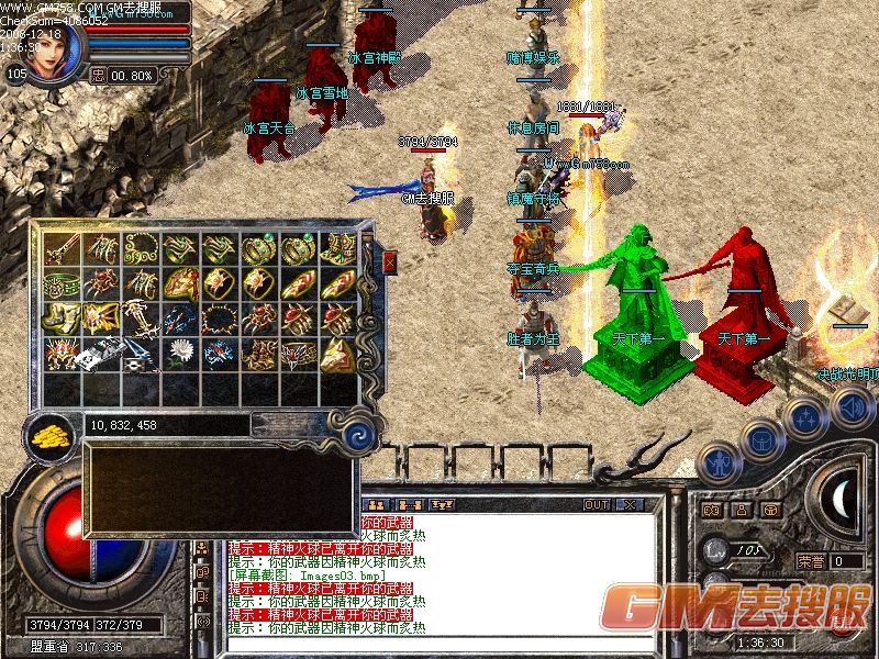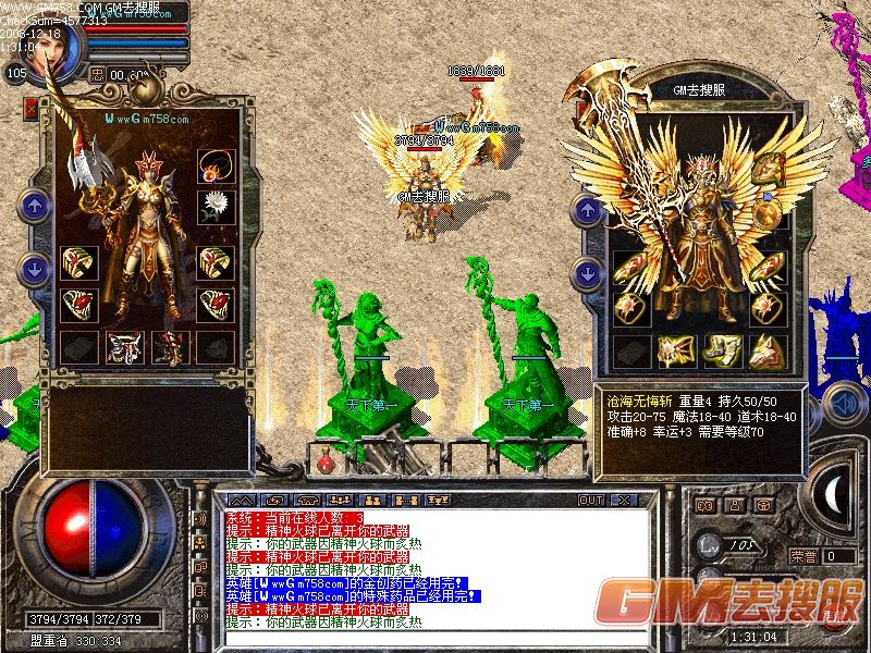 11.版本与盛大版同步更新!最新装备套装!服务器使用双服务器,保证游戏的稳定.出售元宝维持服务器开支.