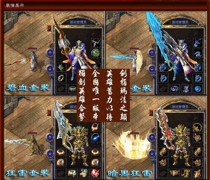 暗黑地狱:从小到大通爆被封印的暗黑系列装备。装备属性比狂雷系列稍高,死亡后消失。通过解封有几率得到终极暗黑装备,装备属性远超解封之前。解封需找铸造达人。地狱入口有五个楼梯,只有一个才是正确通往最底层的,此机关一分钟变动一次。