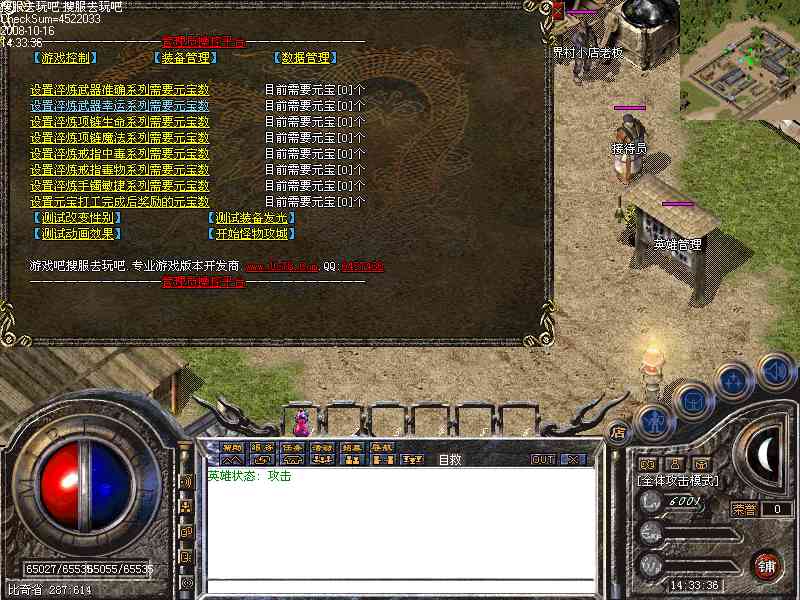 【游戏服务功能】:取消了盟重安全区的其他NPC,整合部分NPC功能到里面,方便玩家点击,节约服务器资源。