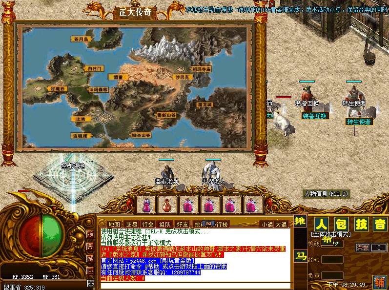 [243] 版本以官方盛大185原版为最初,使用最新黄金界面而制作出来,请玩家认真的体验每个地图,或每件装备的特殊属性,强烈建议大家下载本传奇完整补丁!