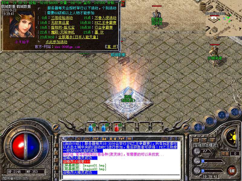 [每日活动]:服务器每天的0点(三倍经验)、15点(万兽入侵)、18点(无敌幸运星)、18点30分(PK之王争霸赛)、19点(摇钱树摇金元宝)、19点30分(行会争霸赛)、22点(魔殿-天降神机)、23点(墨攻-全区的人围攻终极BOOS)等活动,更多信息请点击土城中央的-[活动NPC]了解,建议千万别错过...