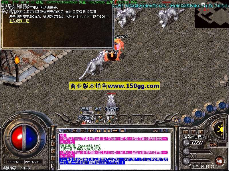 3.本服务器增加新地图珍珑岛、增加新怪物雪域魔王1小时刷,只有它才会爆出本F终极(玲珑系列)!!珍珑宝殿30分钟刷1只珍珑将军必爆3个天雷符(怪物险恶建议组队前往)