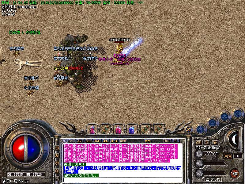 3.元宝获得方法:可打怪物直接爆出,也可打到多余的装备回收获得元宝,总之本服的元宝非常容易搞到.