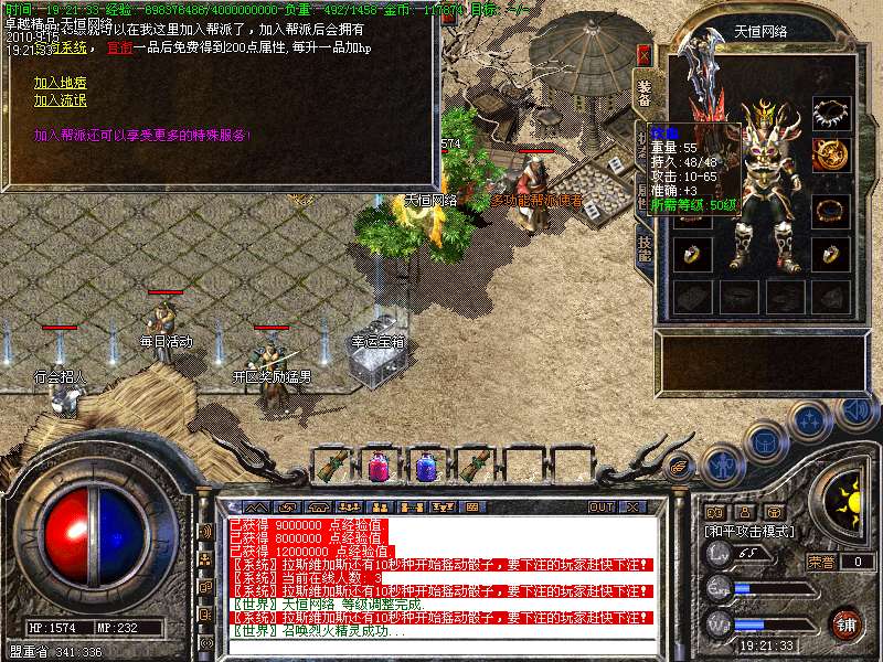 特别地图:主宰天堂为打宝天堂,每天16点开放.此地图任何大小怪物都可以有机率暴出赤月类装备和精品首饰、终极武器!