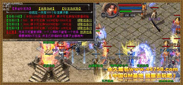 7.增加三大任务:杀怪获得500、3000、100000棋子可得元宝和经验奖励