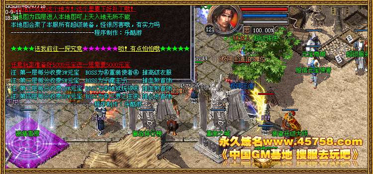 3.增加新地图:终极迷城、激情雪原、重装之城、辉煌城堡、锁妖塔、倚天狂暴城、佛法无边城等等