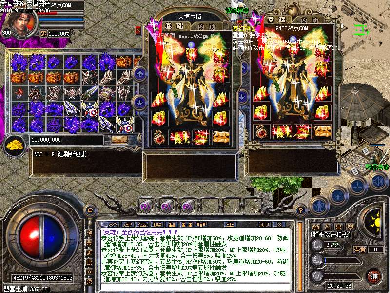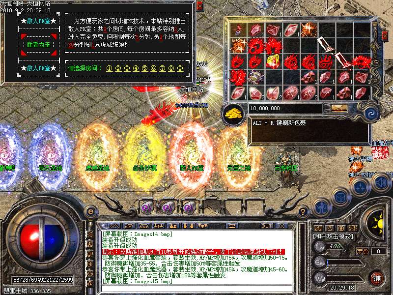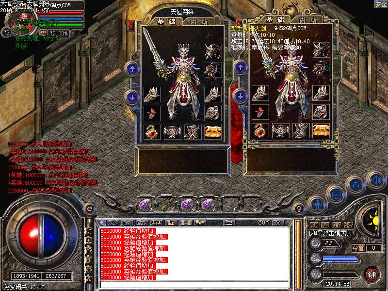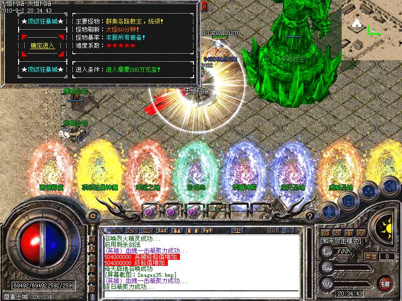 激 情殿堂:每秒1200万经验200万内功经验!(可PK区域,可挂到本服顶级200级,内功255级)