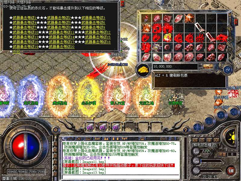 ①.天下第一:每职业等级第一名随时在土城左下角申请,可获得1.2倍攻魔道!