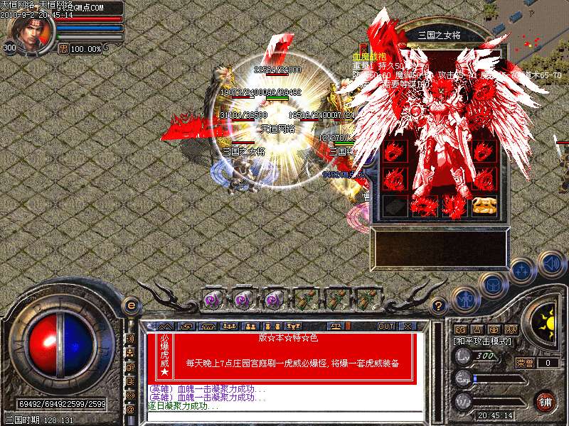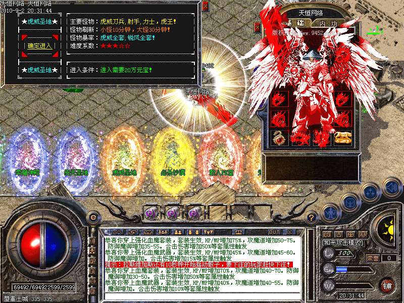 ④.必爆虎威:每天晚上7点庄园宫庭刷一虎威必爆怪,将爆一套虎威装备!