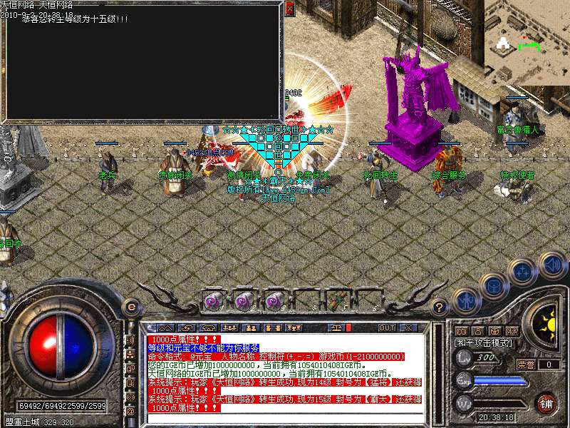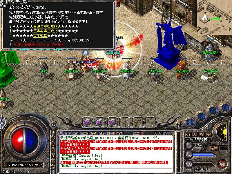 ③.统领攻城:每天下午5点,各城市安全区刷1只滴血统领,杀死后一定机率爆终极装备!