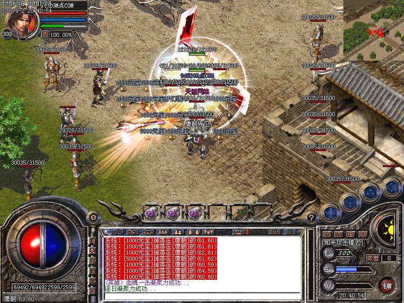 ②.天下第一:每天下午3点,土城左上角进入,最后一个离开获得"天下第一剑"和500万元宝!