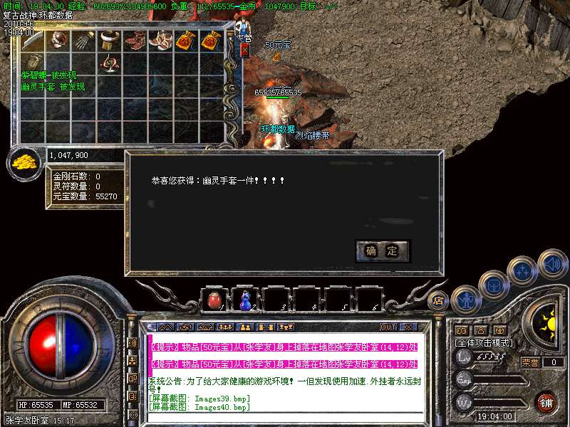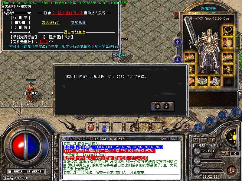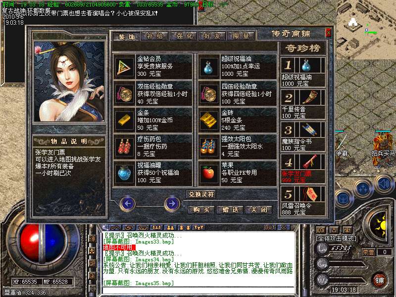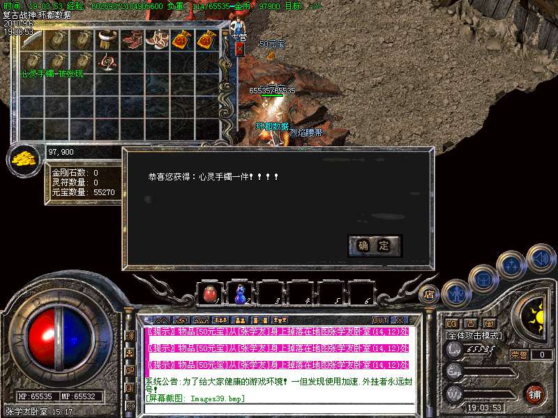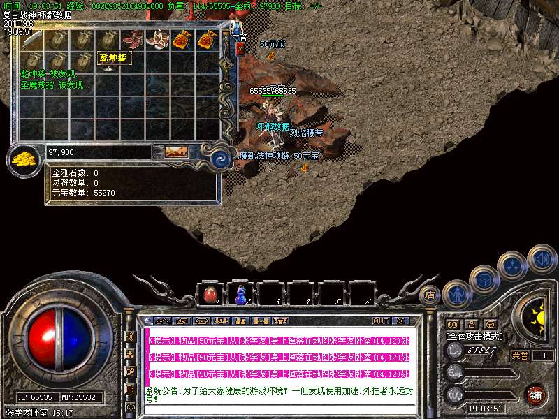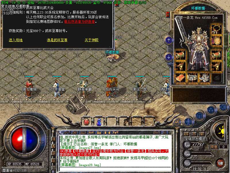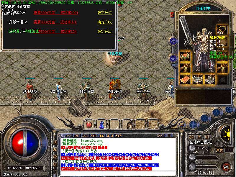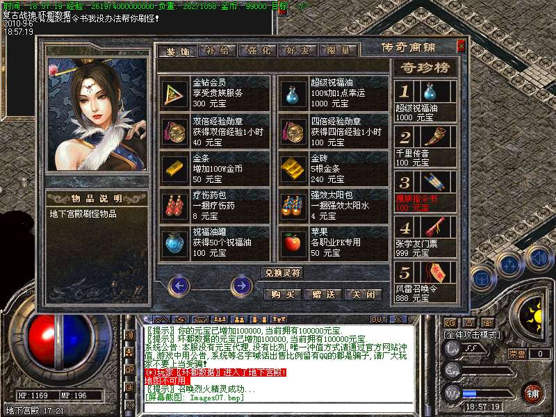 ★本服终极装备为战神系列、要想比战神高的装备,那就只有努力的打极品战神了.