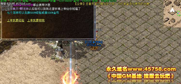 【龙珠许愿】开放七龙珠兑换经验和金币,七龙珠可以在各类BOSS身上和升级的小怪身上获得.