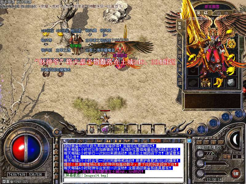 ④.每天每隔4个小时财神爷会散落高级装备在土城老槐树下面