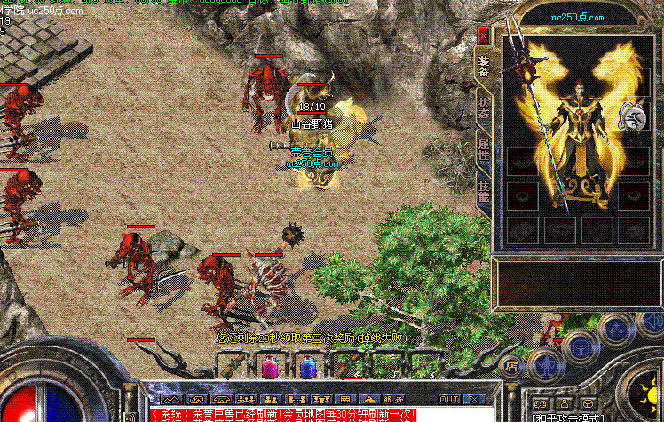 增加游戏乐趣!本服每2小时刷新一只[万年树妖]相当于最好的BOSS哦!还有机会获得马牌那!