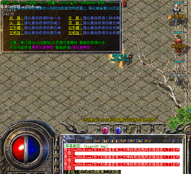 增加元宝爆率!所有大小BOSS都有几率爆出一定数量的元宝和各种强化石哦!收费等地图爆的更多!