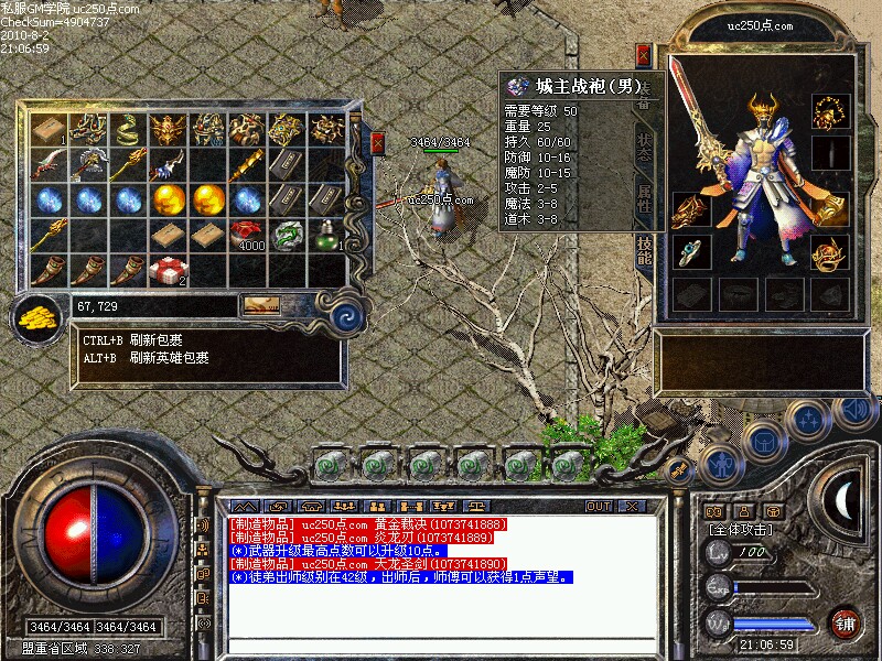 (*)本服封顶级别70级,如果等级达到了70级,请不要再进行冲级,否则后果自负。