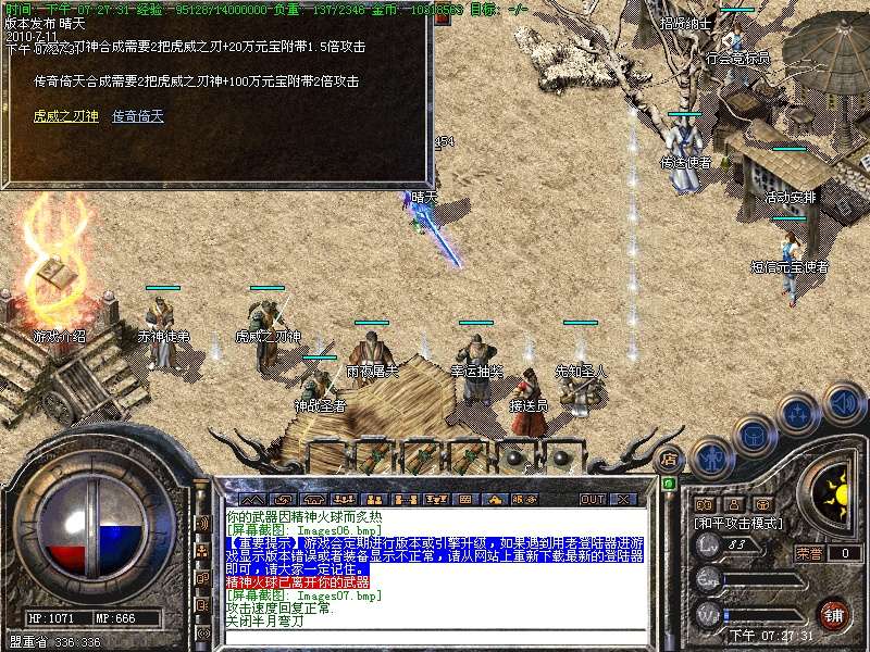 <255,252>【游戏更新】更新元素系统,和东南西北赌博系统,修改了加入雇佣兵不能转生的问题,更新的最新盛大的虎威套装,和倚天剑,此剑带终极技能倚天劈地!