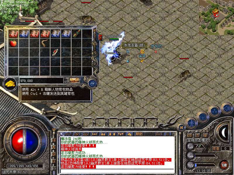 [版本特色16]游戏中升级装备必成功物品原料:紫水晶矿,此物品由普通地图盛大BOSS爆出!另外盛大六幅衣服地图,暗之BOSS也能爆出!