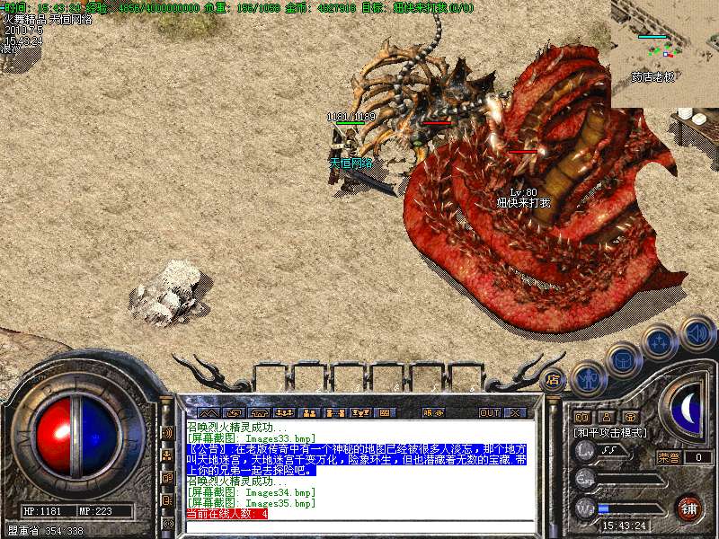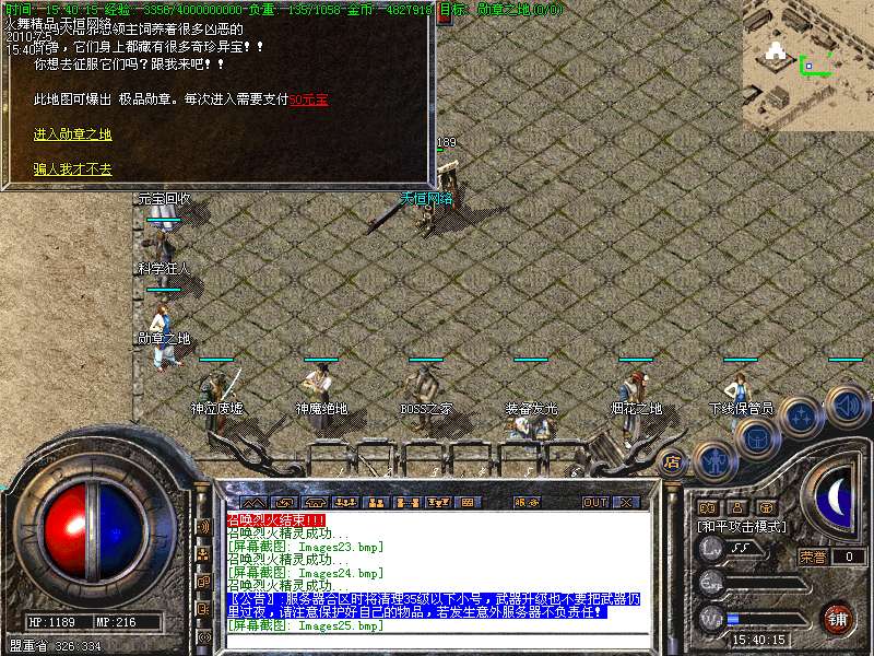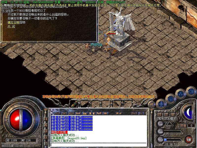 【怪物增加】土城药店每12小时刷新一只BOOS爆怪物攻城令牌1/1,封魔皇宫每12小时刷新一只BOOS爆终极武器爆率为5/1.