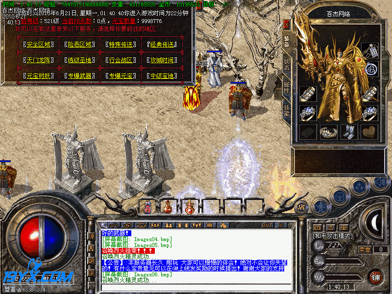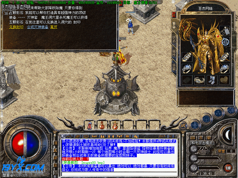 【公告】:本服新增加地图 仙界 魔界 里面怪很猛 怪物狂暴最好装备的地方哦1小时刷新一次 每个地图每小时会刷一只死神战士 此怪可以暴出好装备和合成帝王权装备所需要的宝图和珠子。