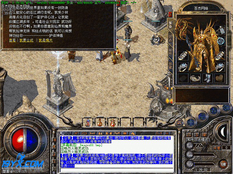 【公告】:每个地图每一小时会刷新一只死神战士 可以暴出合成好装备的材料和珠子