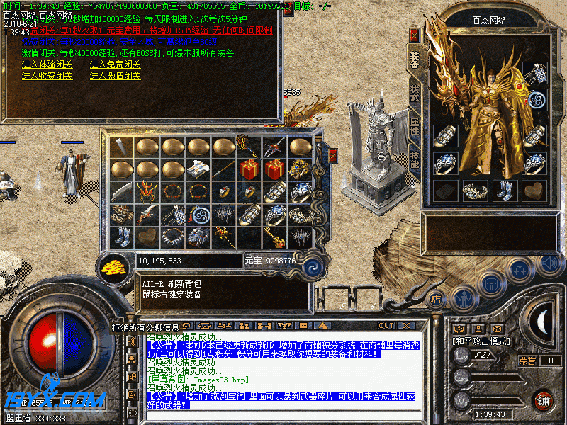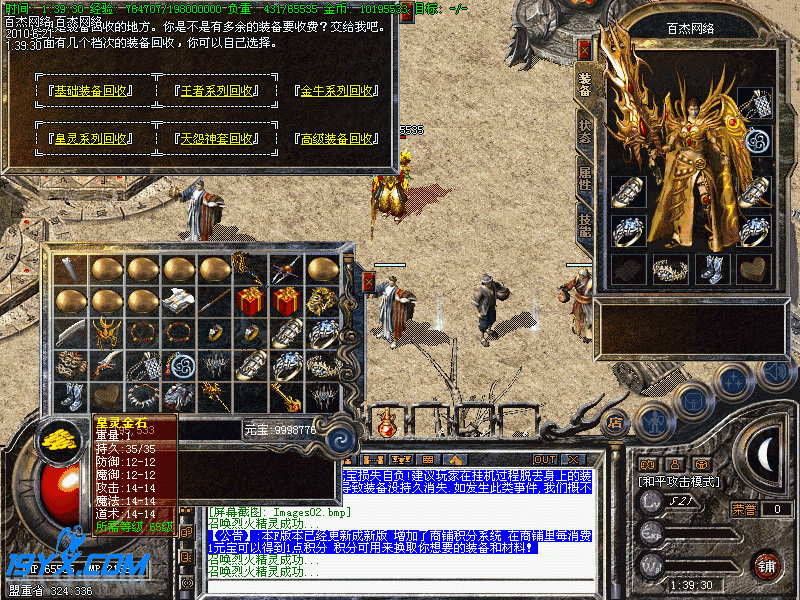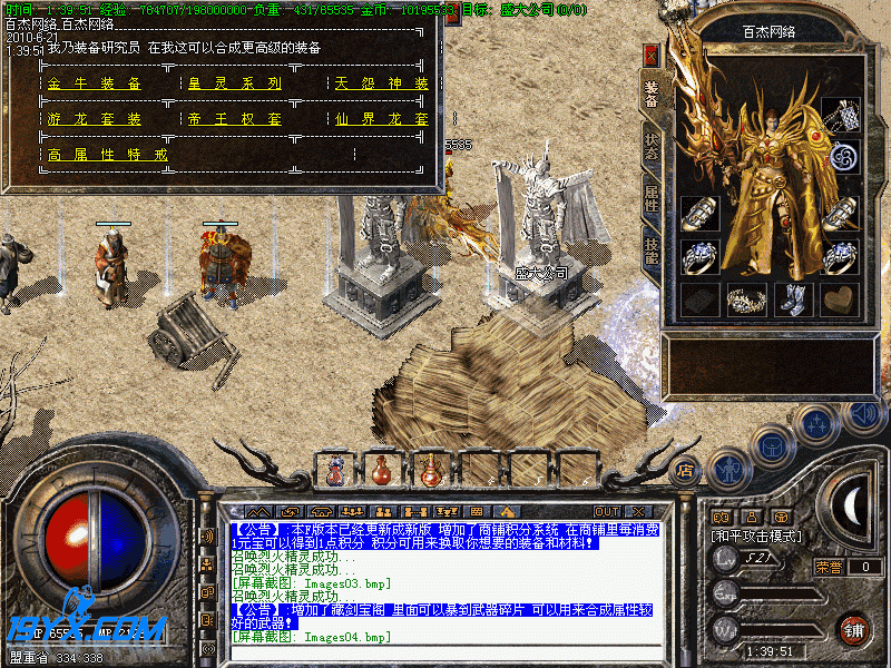 【公告】:打宝建议先去初级地图 经典地图传送各地图(王者金牛装备)→→中级打宝地图散人寻宝(皇灵 天怨套 游龙套)→→终极传送地图(游龙 帝王权套)→→各地图找32000的BOSS(皇灵装备 天怨神套 游龙套 帝王权套 特戒也爆哦) BOSS可以爆出本服全部装备,所有装备都可以爆.