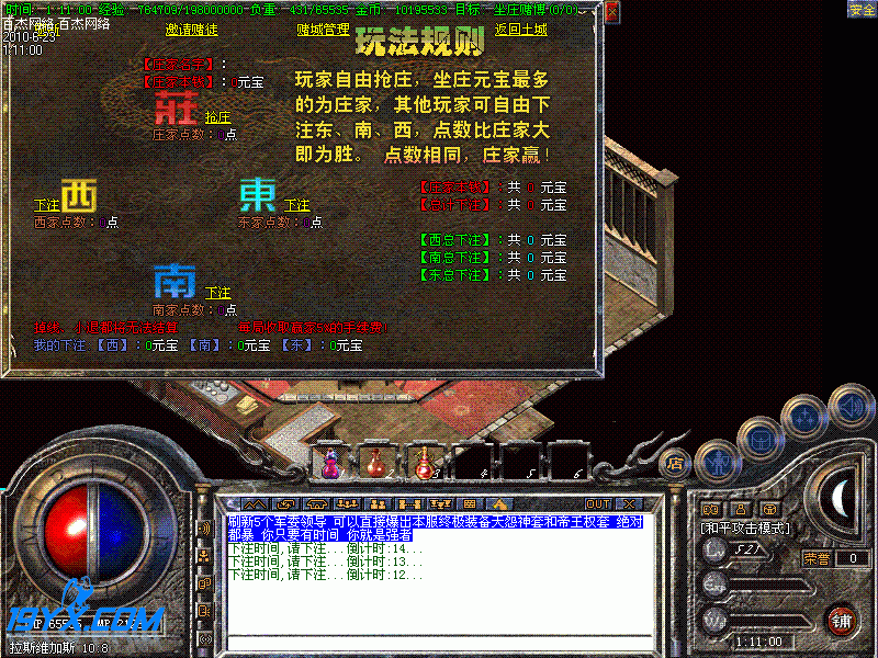 【公告】:欢迎光临,本服为无GM管理模式,一切充值网上完成.充值比例为【短信充值比例1:1000】,【其他卡类均多赠送50%】【网上银行,支付宝,财富通,快钱,多赠送100%】!!!
