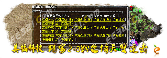 游戏介绍⑤: 游戏装备很好打。回收所有装备。一小时可回收4-6千W元宝.